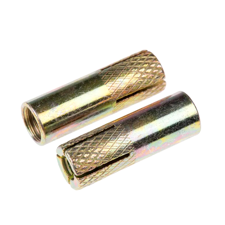 Drop-in anchors are heavy-duty expansion anchors designed for solid concrete, brick, or stone. The yellow zinc plating provides excellent corrosion resistance for long-term use.