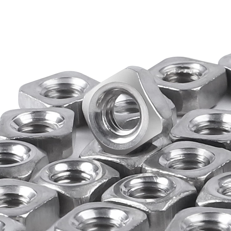 A square nut is a four-sided nut. Compared to standard hex nuts, square nuts have a greater surface in contact with the part being fastened, and therefore provide greater resistance to loosening (though also greater resistance to tightening)[citation needed]. They are also much less likely to become rounded-off after repeated loosening/tightening cycles. Square nuts are typically mated with square-headed bolts. Square nuts are used along with flat washers to avoid damage from its sharp edges and increase the strength of the fastener. Square nuts can have standard, fine or coarse threading with platings of zinc yellow, plain, zinc clear, tin and cadmium, among others. Most can meet either the ASTM A194, ASTM A563, or ASTM F594 standard.