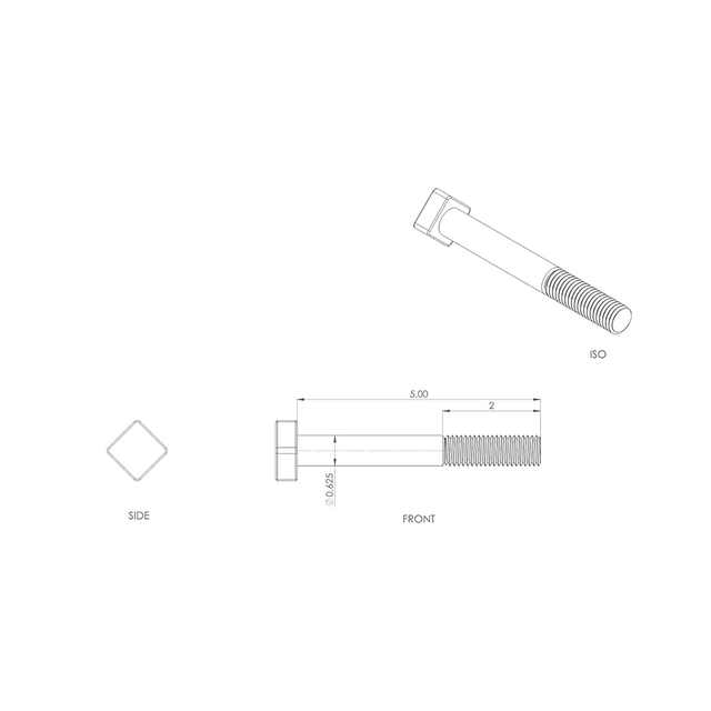 Square head bolts are used in applications where visibility is limited but durable fastening is required. These bolts have large, flat sides and are easy to tighten with a wrench. Square heads are best used in tight or dark spaces where a machinist or fabricator must tighten the bolt blind. Square head bolt has a large square-shaped head with external threading. Ideal for applications that require easy gripping when using a socket or wrench.